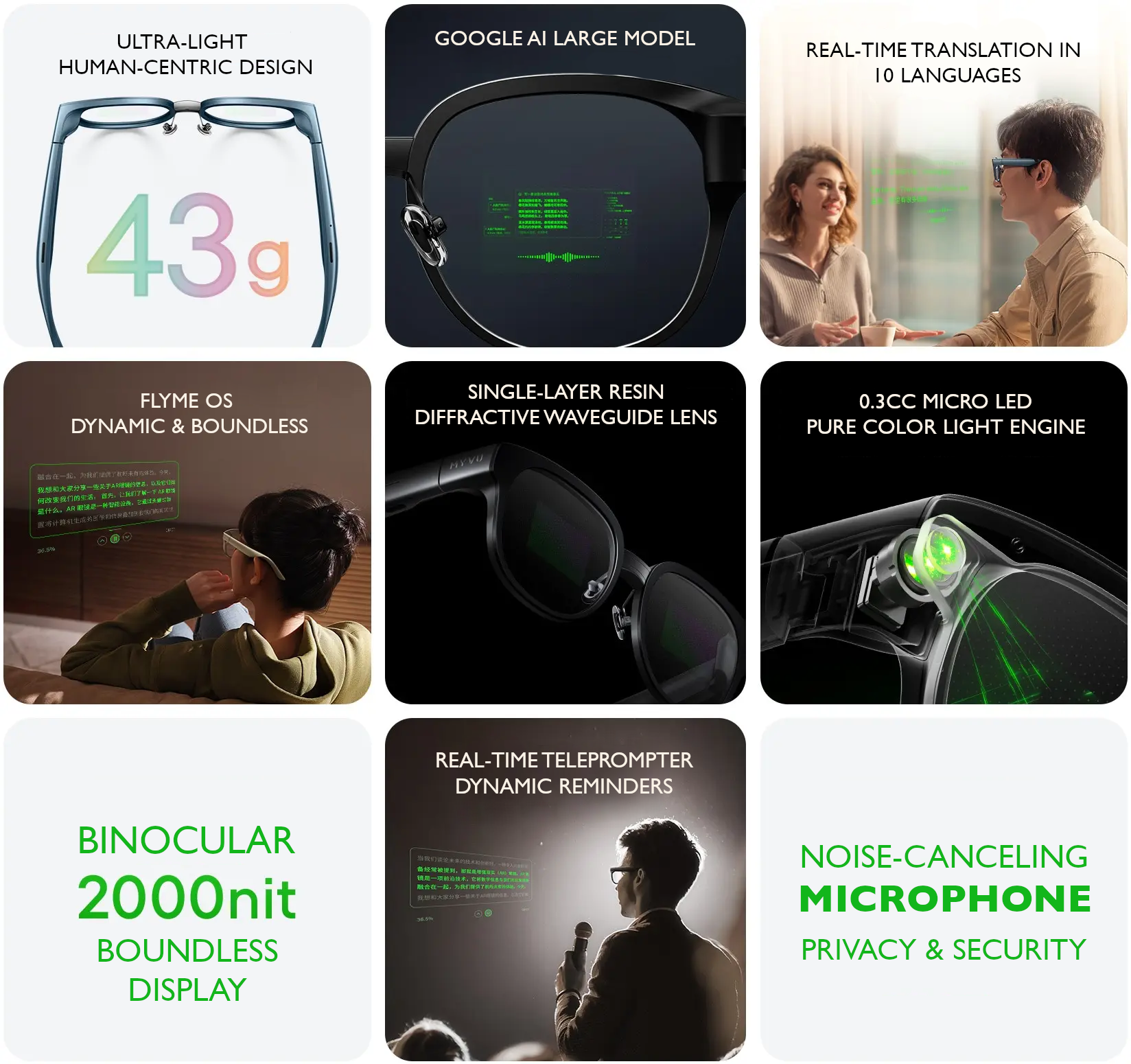 所有这些功能都融入到时尚、轻巧的设计中,重量仅为 43 克,而平均眼镜重量为 30-50 克。